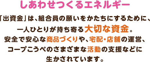 なお、活動エリア外への転居などで、コープこうべをご利用いただけなくなった場合は、出資金を全額お返しします。