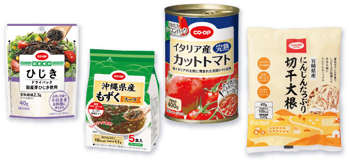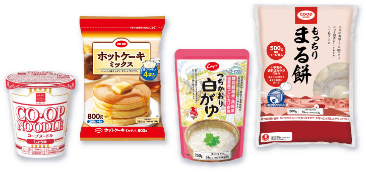 ローリングストックは、普段から便利に使える商品を選ぶことも大切です。ストックに適したコープ商品をご紹介します。
