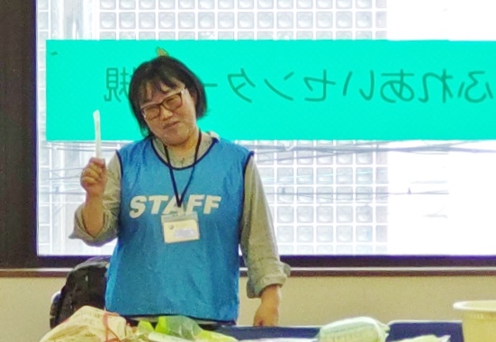 ・ビニール袋い入れた水が、凝固剤で固まっていく様子を見て、水も電気もとまったときのトイレについて学びました。